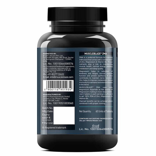 MuscleBlaze ZMA with 100% RDA of Zinc, Magnesium & Vitamin B6, 60 tablet(s)